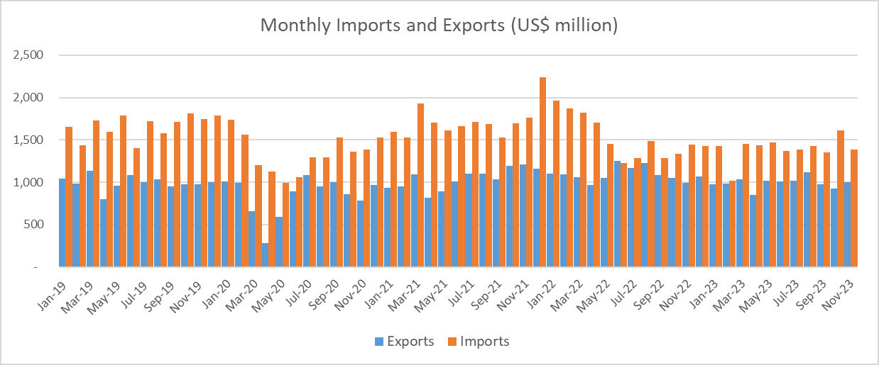 පෙර වසරේ තුන් වන කාර්තුවේ රාජ්‍ය ආදායමට සාපේක්ෂව 2023 වසරේ තුන් වන කාර්තුවේදී රාජ්‍ය ආදායමේ 51%ක වර්ධනයක් තිබෙනවා. අවසාන කාර්තුවේදී අවම වශයෙන් මීට සමාන වර්ධනයක් නොතිබෙන්න හේතුවක් නැහැ. එහෙම වුනොත්, හතරවන කාර්තුවේදී රුපියල් බිලියන 849ක ආදායමක් එකතු වී වසරේ රාජ්‍ය ආදායම රුපියල් බිලියන 2,967.8 මට්ටමට යා යුතුයි. අපගේ ඇස්තමේන්තු අනුව, මෙයින් අදහස් වන්නේ මෙම 2023 වසර තුළ දදේනියෙන් 10.7%-10.8% අතර රාජ්‍ය ආදායමක් ඉලක්ක කළ හැකි බවයි. මෙය අරමුදල විසින් ලබා දී ඇති ඉලක්කය වන දදේනියෙන් 11.0% මට්ටමට වඩා අඩු වුවත්, අරමුදලේ සංශෝධිත ඇස්තමේන්තුව වන දදේනියෙන් 10.2% මට්ටමට වඩා ගොඩක් හොඳ මට්ටමක්.